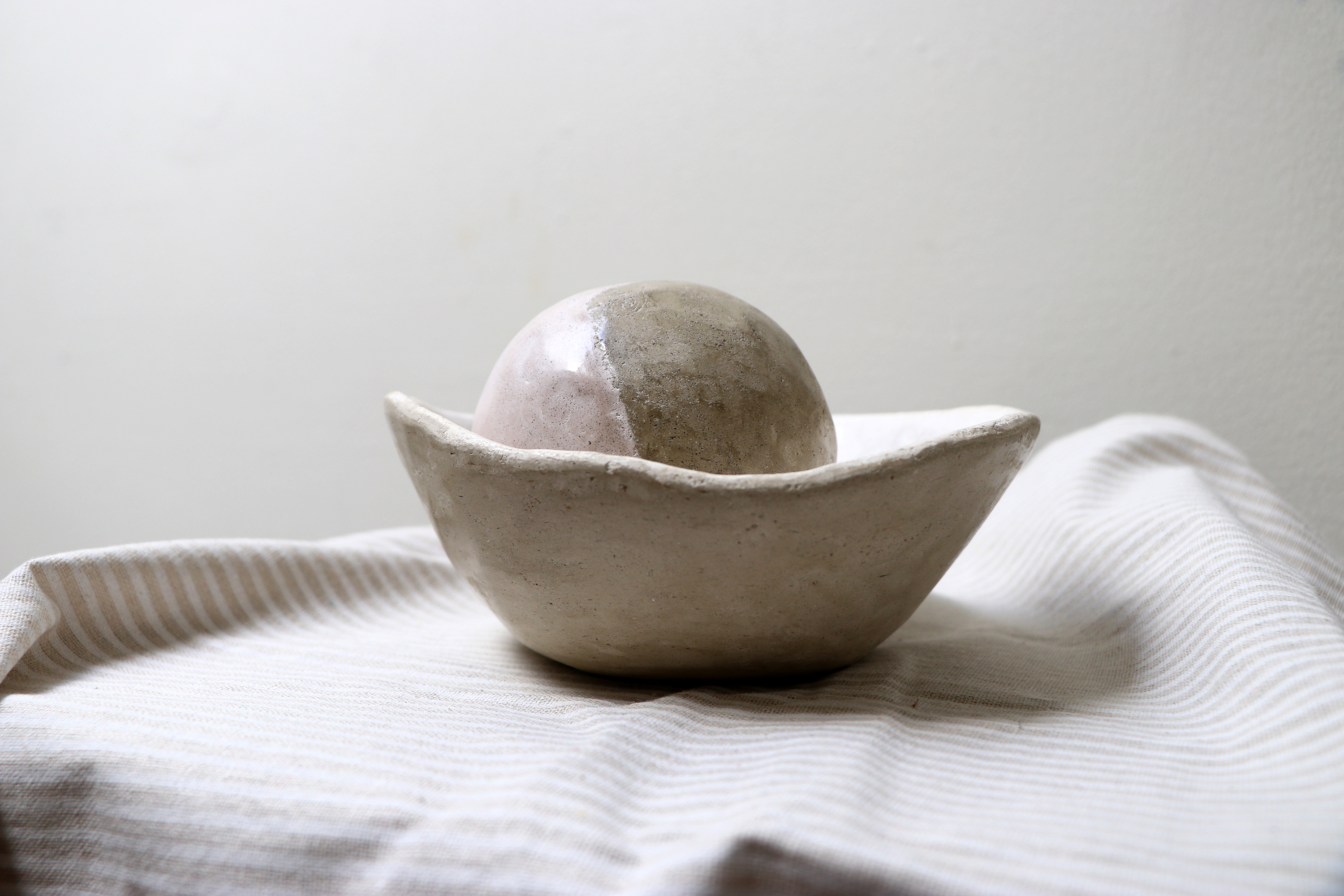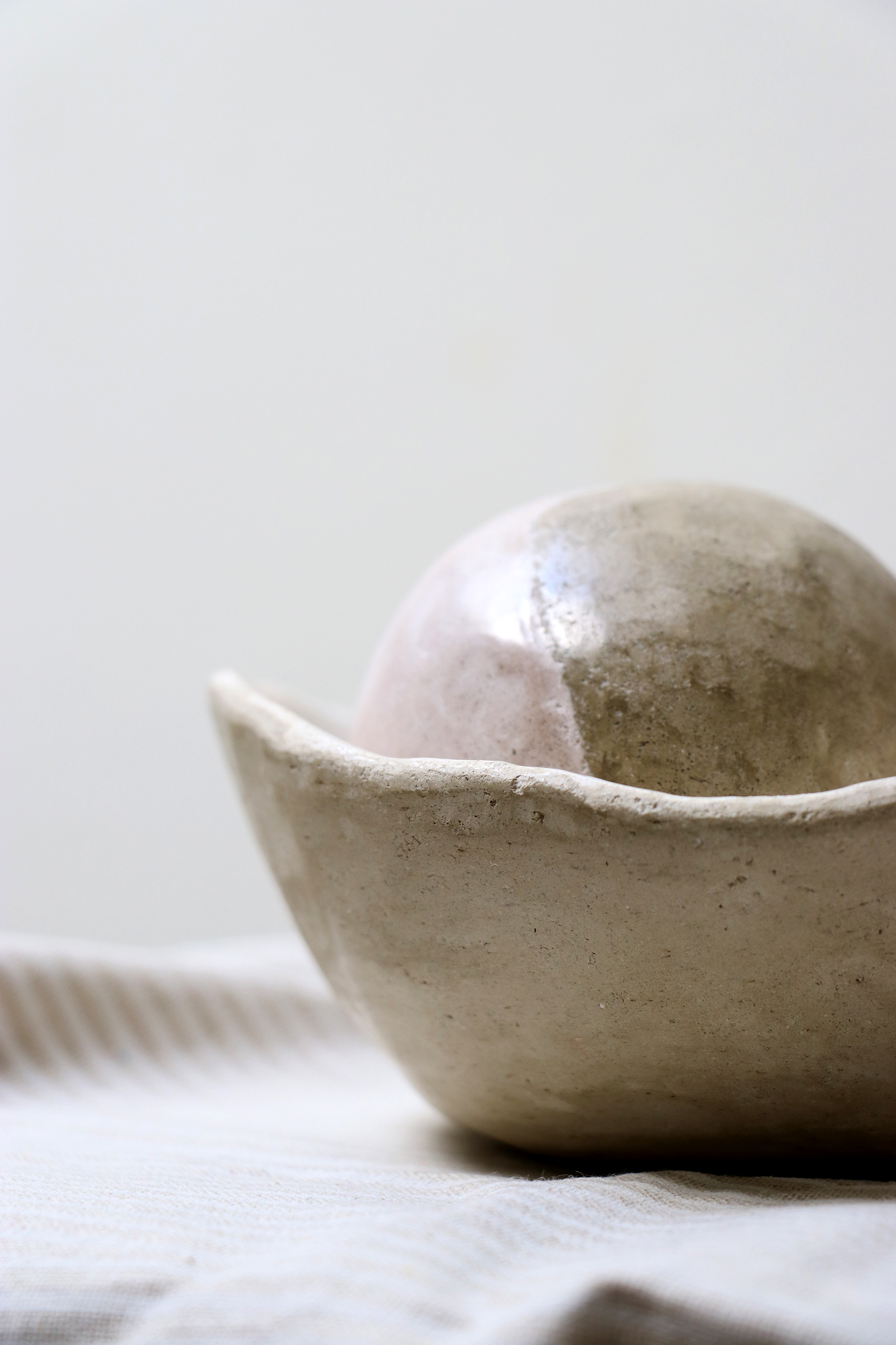Boule de Tadelakt dans son bol Photos © Nathalie Presle Boule de Tadelakt bicolore dans son bol fait de Tadelakt et de Marmorino Similaire